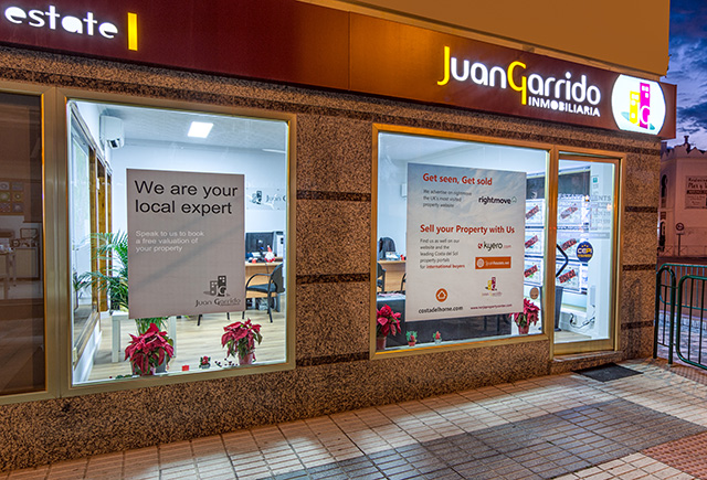 Our office is strategically located in one of the busiest commercial areas: Plaza Cantarero, Bajo 1, Nerja, easy to find thanks to its large visible windows (see pictures below).