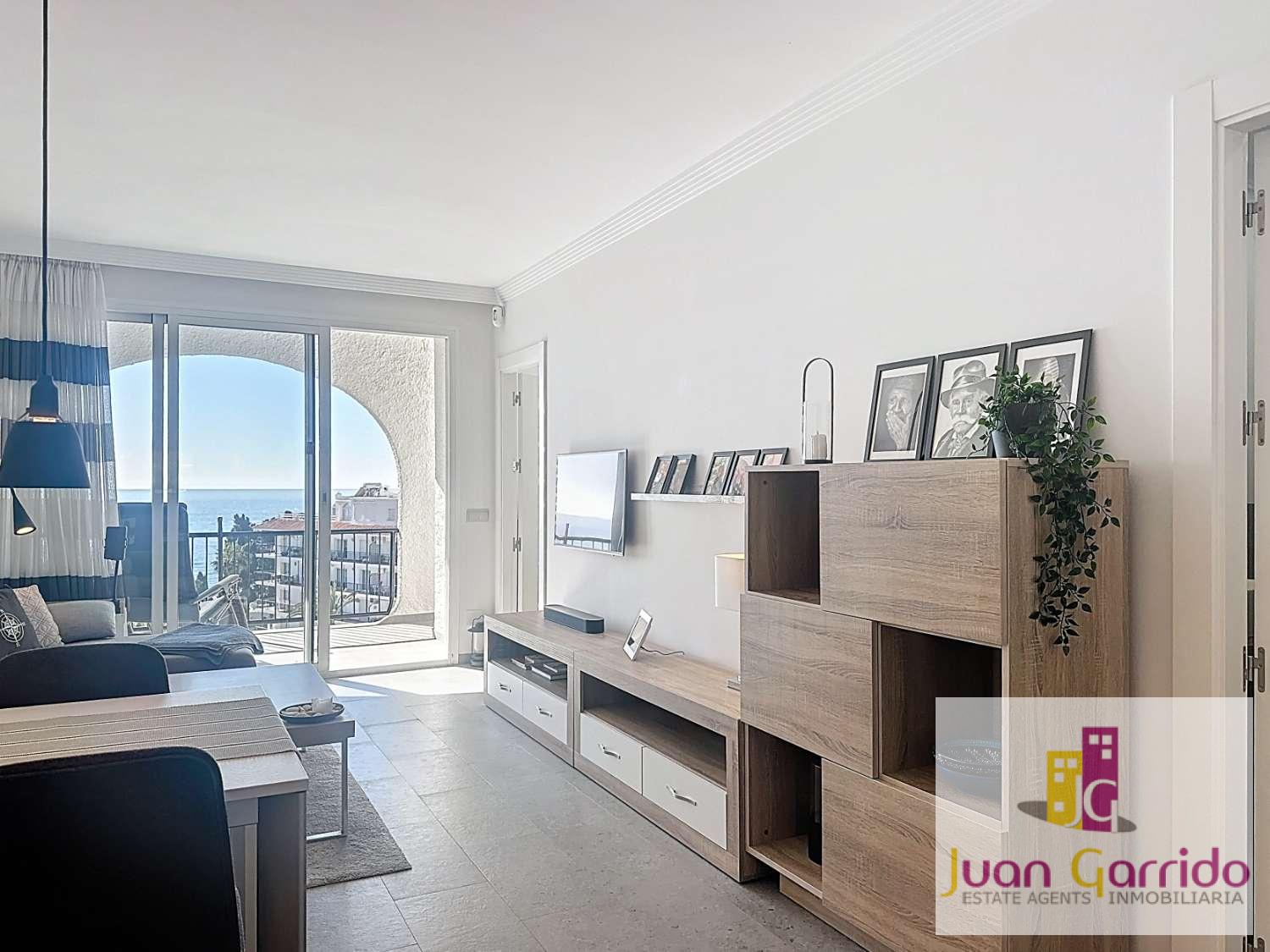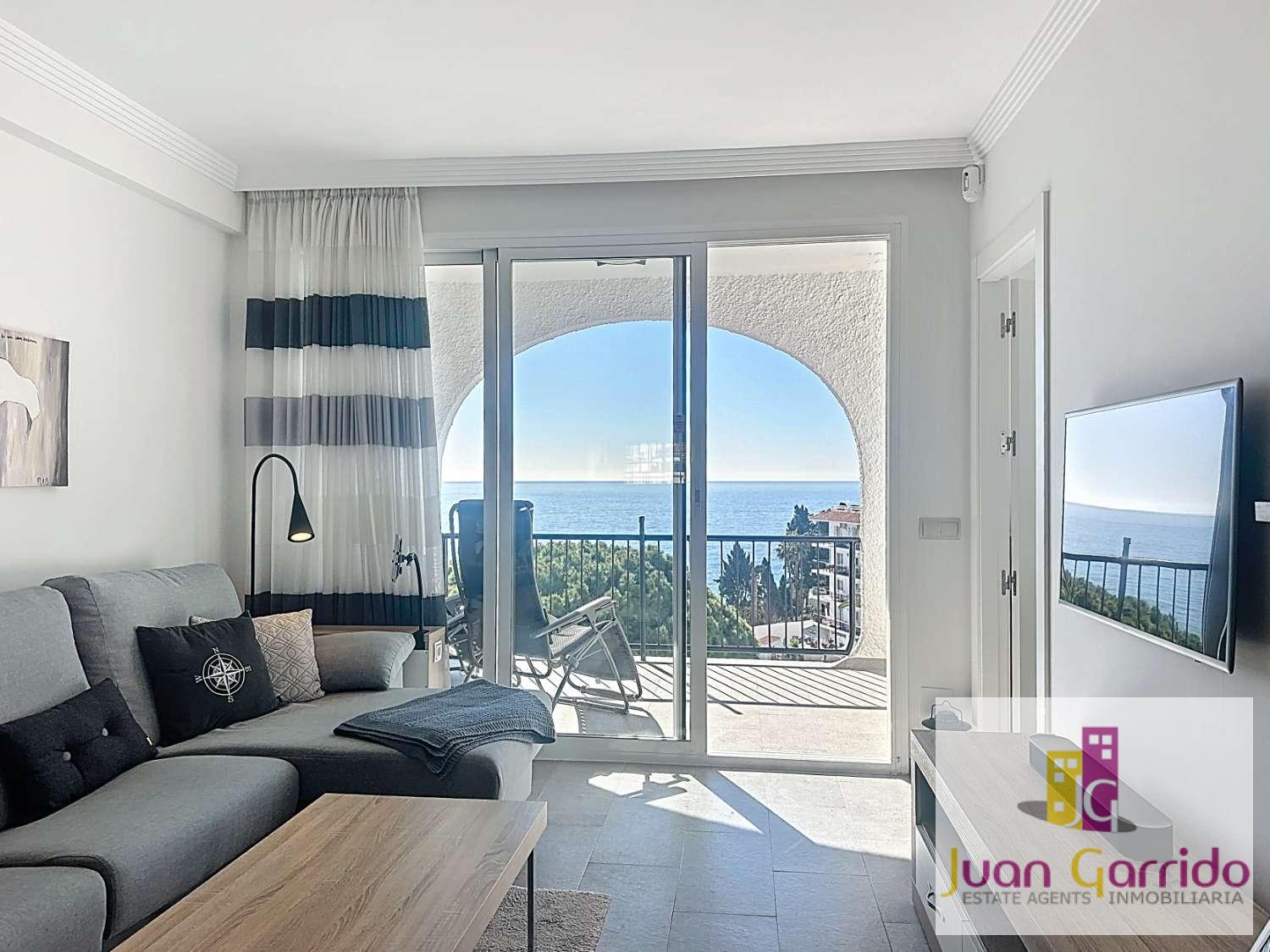 This exceptional top-floor apartment has been recently refurbished to an outstanding standard and enjoys a privileged frontline position by the Mediterranean in one of Nerja’s most sought-after residential buildings. Ideally located just moments from the beach, with steps leading directly down to Burriana Beach, and only a short walk from the iconic Balcón de Europa, the property offers an enviable combination of convenience, lifestyle, and breathtaking scenery.