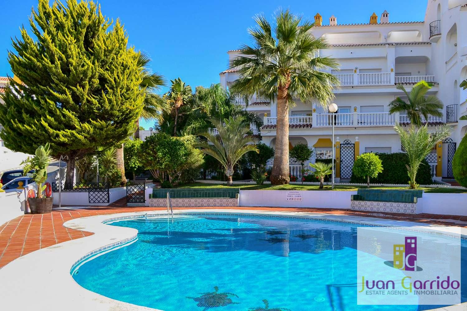 El complejo dispone de bonitas zonas ajardinadas muy bien cuidadas y una piscina comunitaria, perfecta para refrescarse y descansar. Además, hay fácil aparcamiento en la calle justo frente a la propiedad.