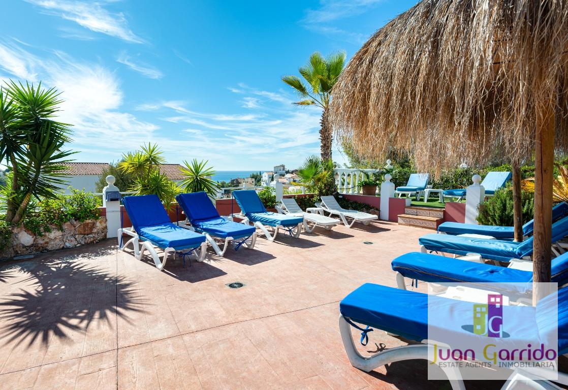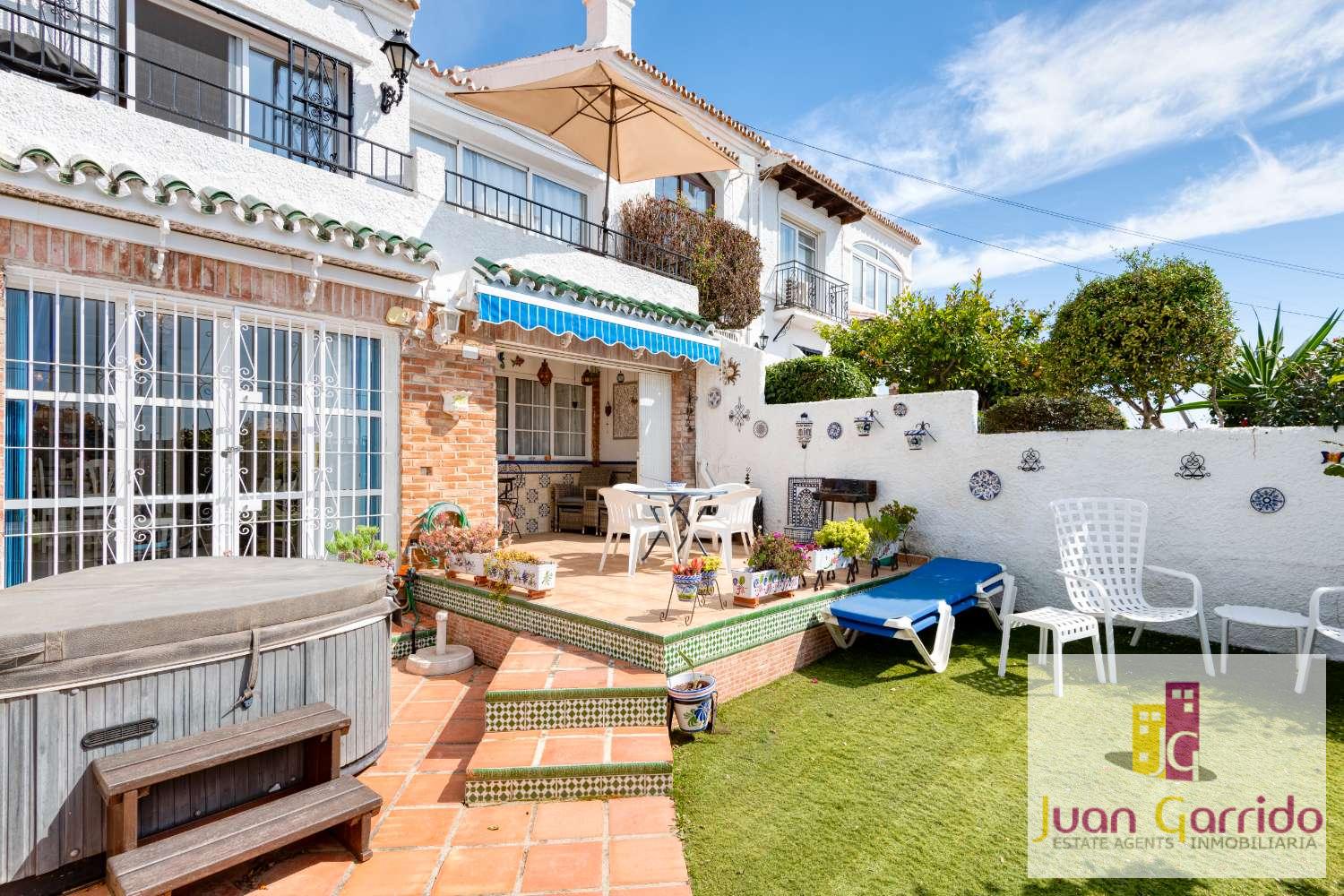 La característica más destacada de esta casa es su excepcional espacio exterior. Cuenta con una amplia y soleada terraza perfecta para comer al aire libre, con una zona de estar cubierta y acceso directo desde el salón. Unas escaleras conducen a un patio privado y un jardín, bellamente presentado con césped artificial de bajo mantenimiento. Aquí también encontrará un relajante jacuzzi, tumbonas y zonas de estar adicionales, ideales para disfrutar del estilo de vida de la Costa del Sol durante todo el año.