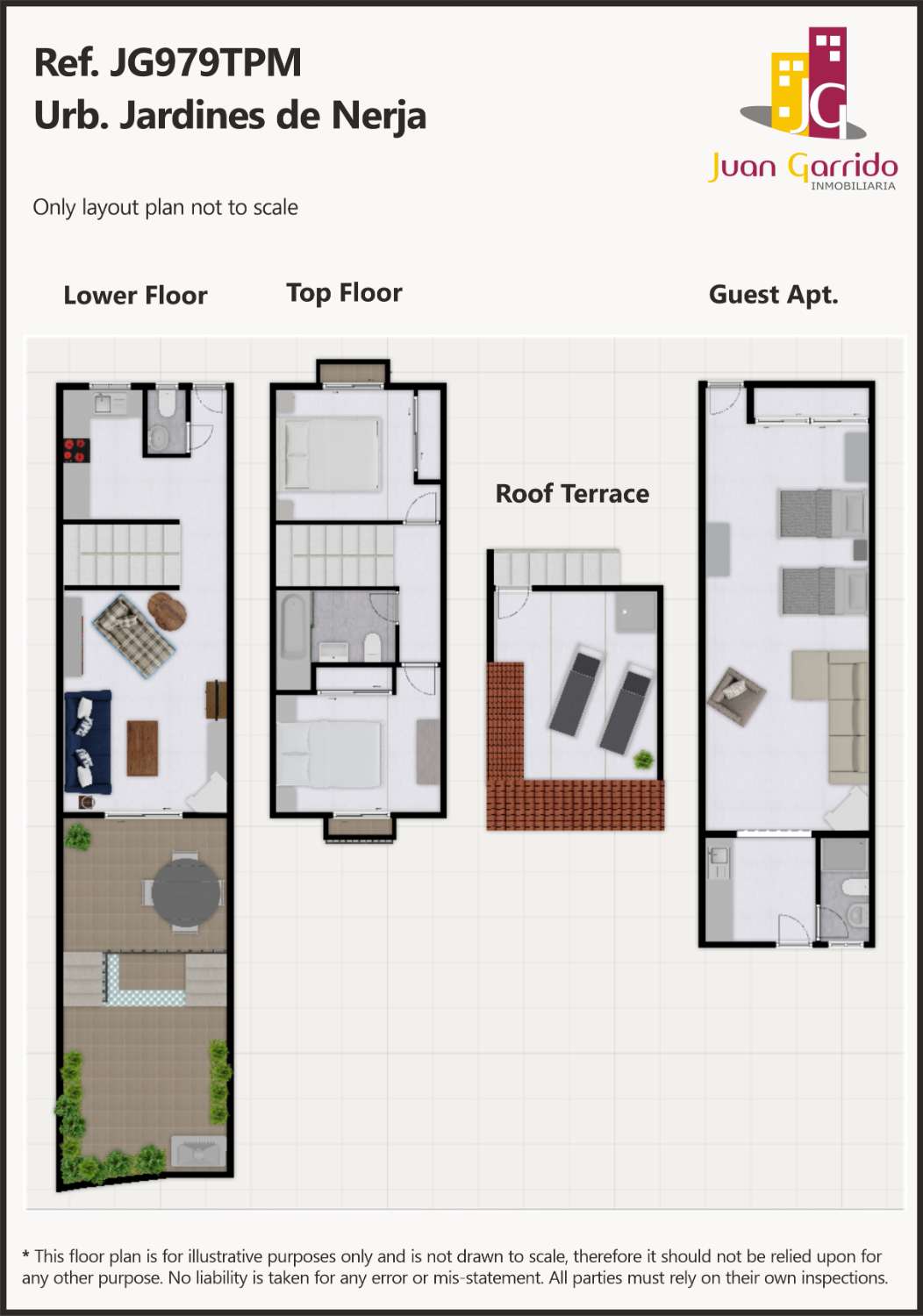 Denne attraktive eiendommen ligger i det ettertraktede, inngjerdede boligområdet Jardines de Nerja på østsiden av byen, og er en del av et velholdt boligkompleks med vakkert anlagte hager, et stort felles svømmebasseng og felles parkering utenfor veien.
