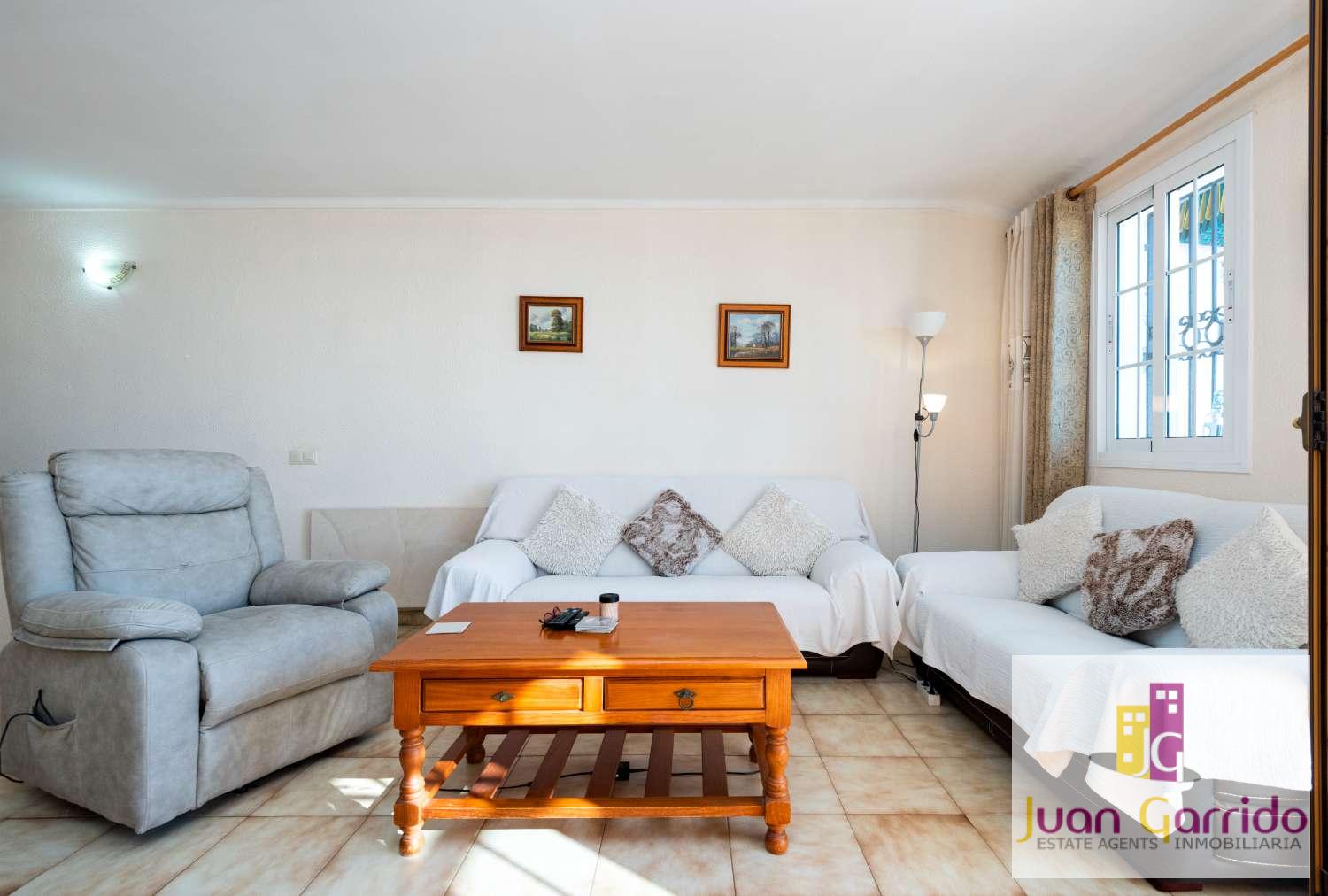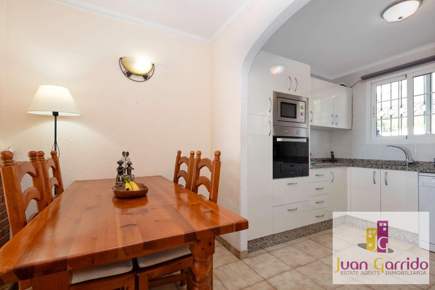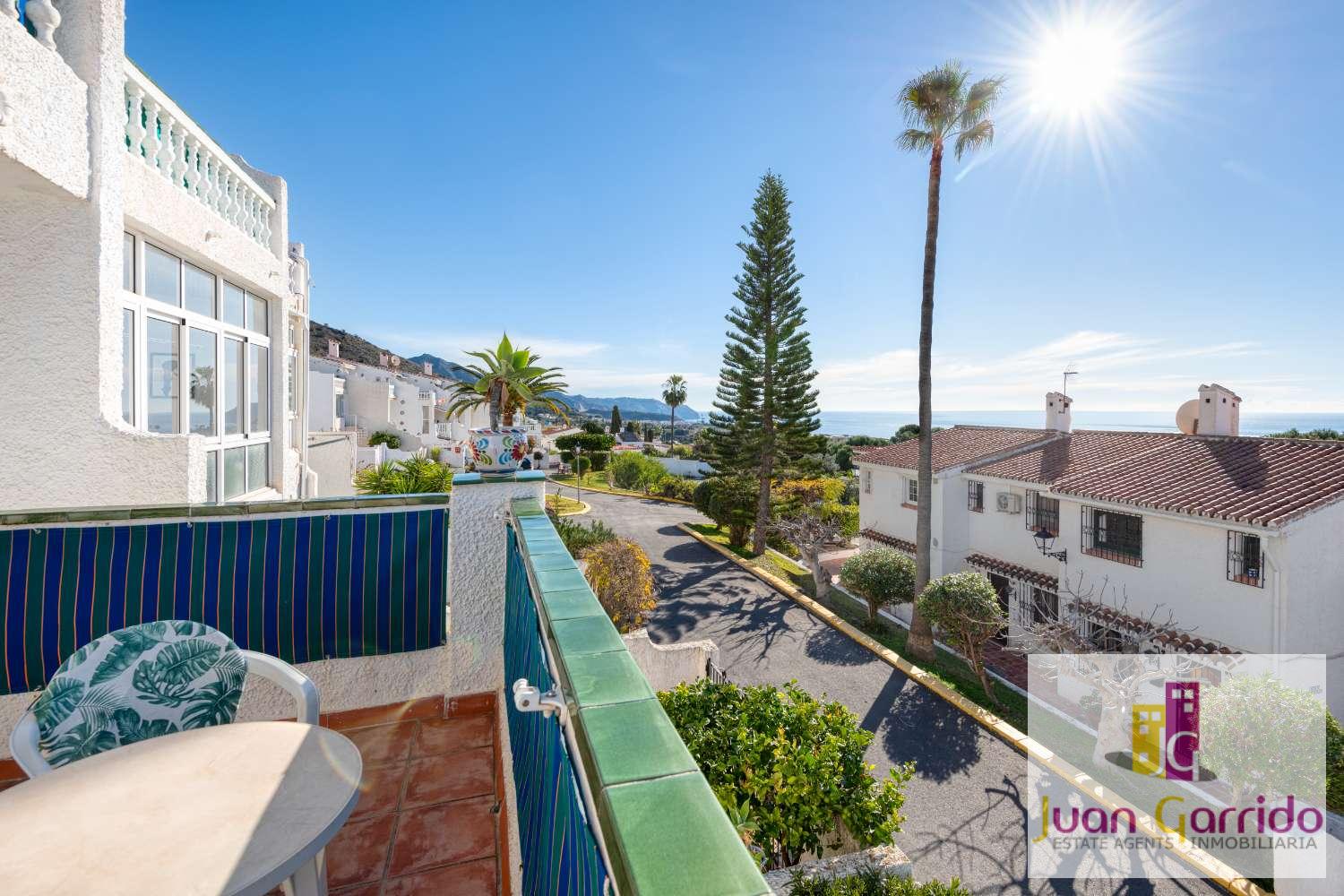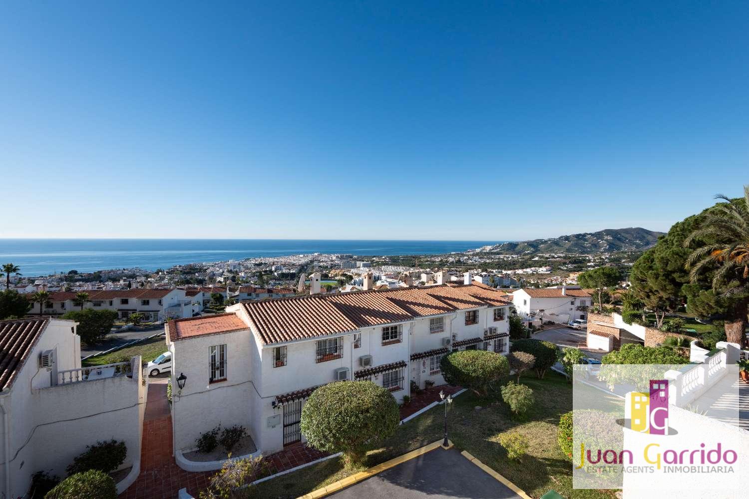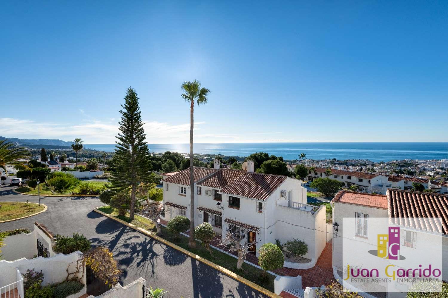 Radhus i utmärkt skick, beläget i den prestigefyllda och mycket eftertraktade urbanisationen El Algarrobo, som erbjuder en stor gemensam pool och välskötta trädgårdar. Läget är särskilt bekvämt, med restauranger och en liten stormarknad i San Juan, samt en närliggande busshållplats som erbjuder regelbunden och pålitlig service med enkel tillgång till Nerjas centrum och dess stränder.