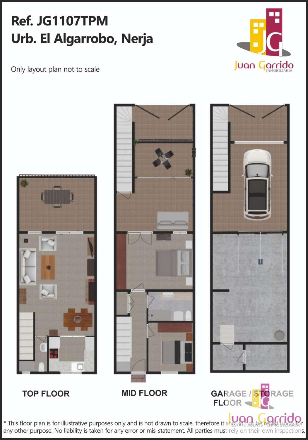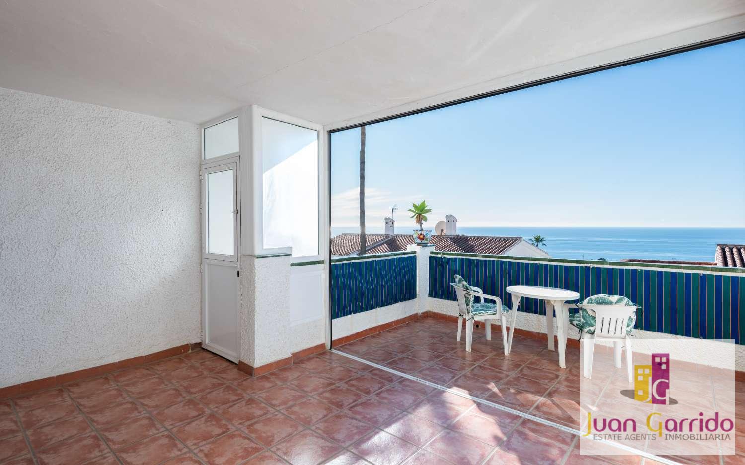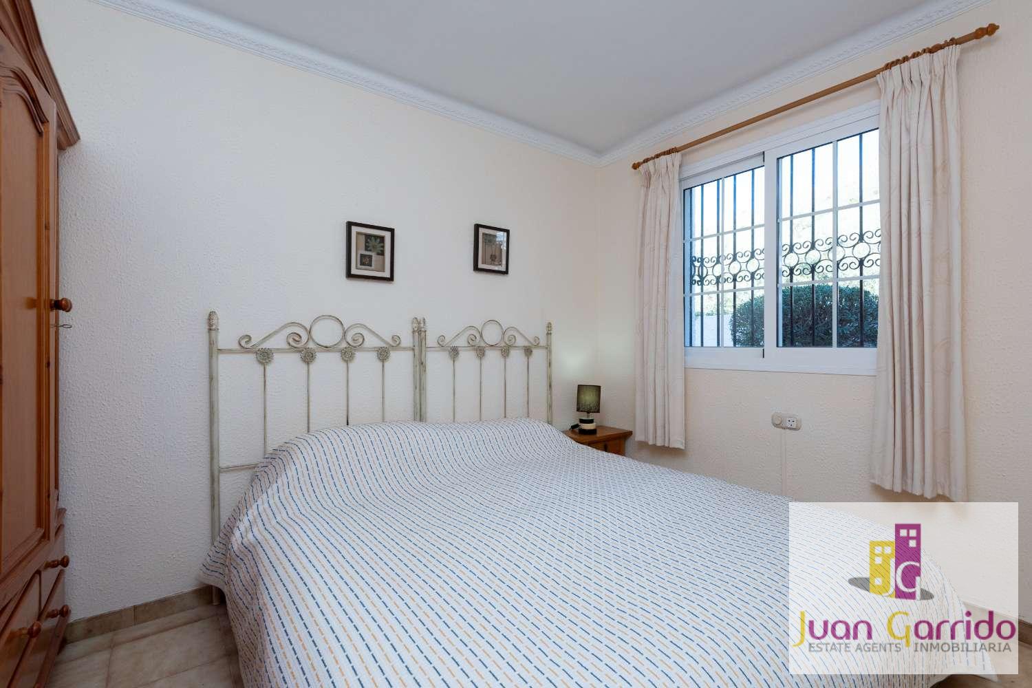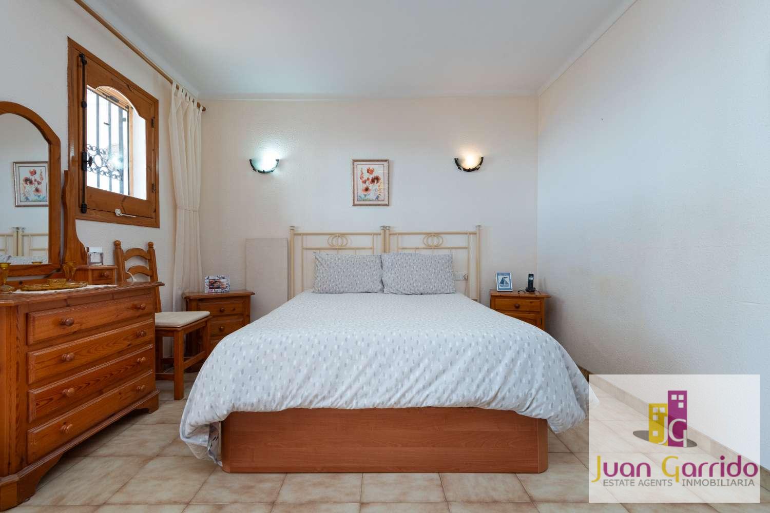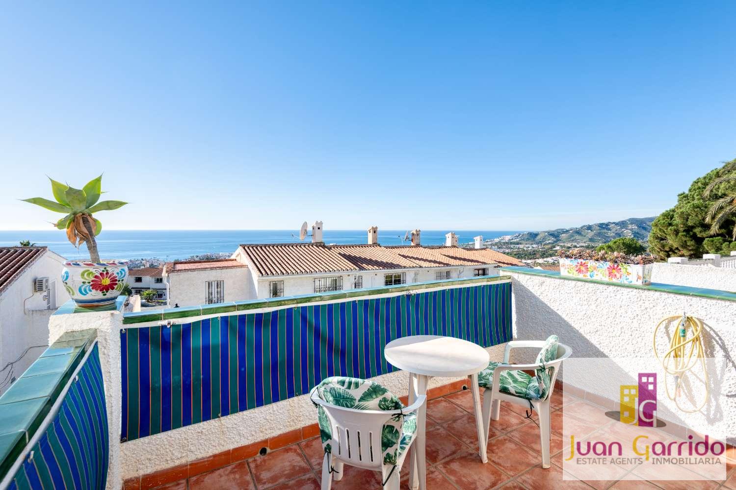 Radhus i utmärkt skick, beläget i den prestigefyllda och mycket eftertraktade urbanisationen El Algarrobo, som erbjuder en stor gemensam pool och välskötta trädgårdar. Läget är särskilt bekvämt, med restauranger och en liten stormarknad i San Juan, samt en närliggande busshållplats som erbjuder regelbunden och pålitlig service med enkel tillgång till Nerjas centrum och dess stränder.